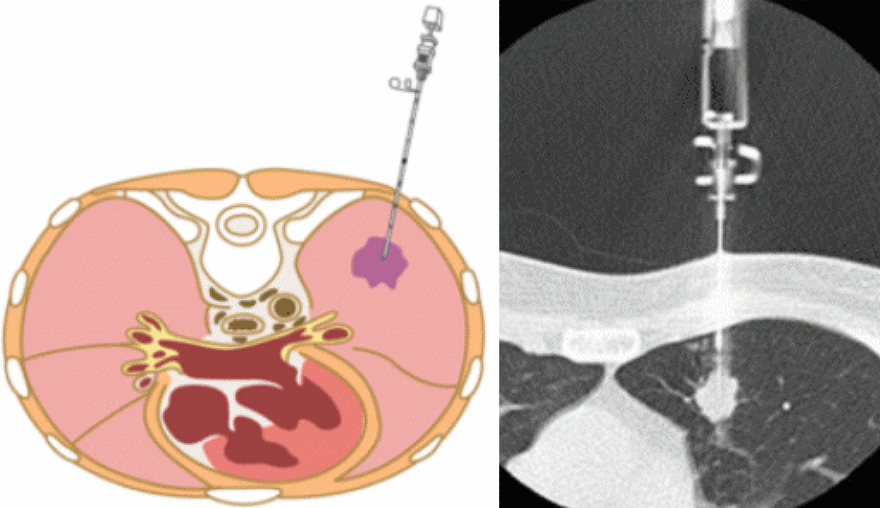 肺がんの疑いがあるかどうかをレントゲンやCTで検査します。それで疑いがある場合は,確定診断のために気管支内視鏡検査や針生検などで細胞/組織を採取します。