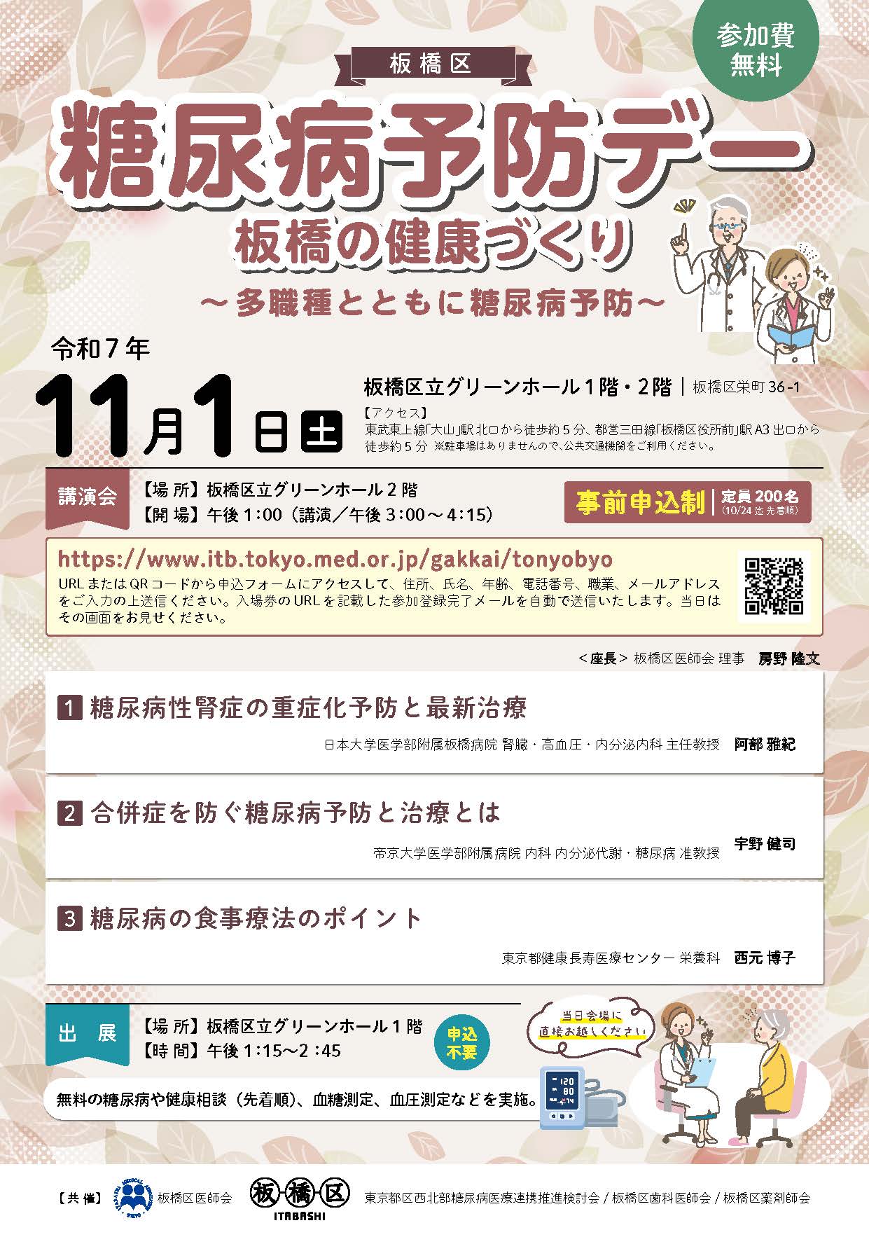 令和7年11月1日(土)に,板橋区立グリーンホールにて「糖尿病予防デー」として講演会が開催されます。
